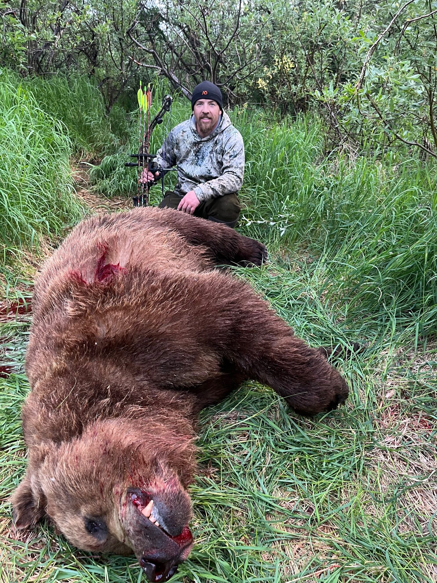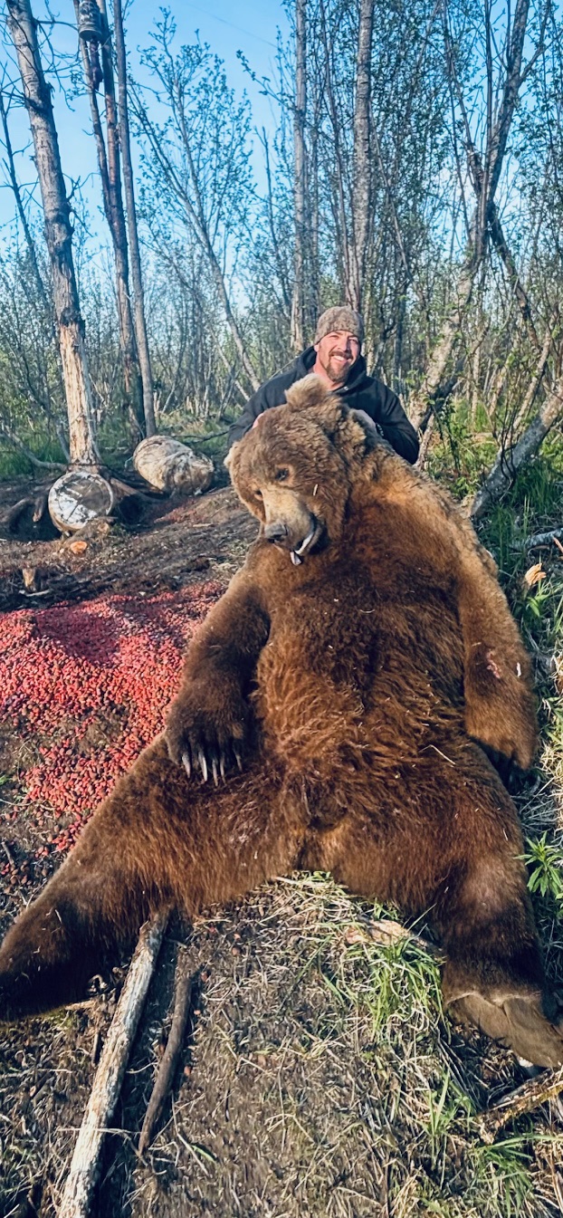 2023 Client Fred St. reports after taking his 9’brownie: “This guide is the whole package. His knowledge of the area and the animals along with frequent scouting help keep you motivated. Not my first brown bear hunt but the best. The communication with the Guide/Outfitter was the best of my hunts and what they all should be like. I understand the challenges of the open season and remoteness but in the offseason they should be in touch and responsive. This guy is.”