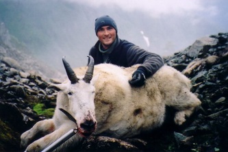 This outfitter’s mountain goat hunts are conducted during late September aboard their private yacht, and all have guaranteed tags (NO DRAWS!). They offer two types of goat hunts. The first is “low elevation” hunt, which is from their 50’ boat which you return to nightly (when not on the mountain pursuing goats, you are living in comfort aboard the yacht where your full-time cook keeps you fed and the TV plays a good Western). The second type of hunt for goats involves arriving by the boat, going ashore, climbing and spiking out for a couple days, then return to re-provision. The first is a relatively easy hunt, while the other is a more “normal” goat hunt. Their area has an unreal amount of goats, and seeing 50 to 100 a day is not unusual. Horns average around 9.5 inches, which is excellent, and success is high for clients who can walk and climb. These are true trophy mountain goat hunts. They harvest strictly large billies with long furred hides. They do not shoot female or small goats.