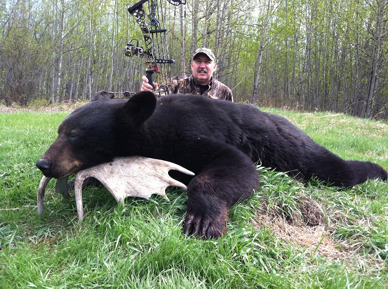 This is an outstanding outfitter in Alberta who not only produces good bears, but lots of bears. Over the last 8-10 years, they averaged between 1.6 to 1.8 bears per hunter. That includes bowhunters and gun hunters. In layman’s terms, that means nearly everyone has a chance at taking two bears! The outfitter hunts in the famed Peace River area of Alberta. The bear hunting there has been written up dozens of times in various sporting magazines. It’s one of the premier bear hunting areas in North America. The average size bear is also excellent. Typically, bears will average between six and seven feet in the spring, and perhaps a few inches larger in the fall. Top bears have made eight feet and seven footers are taken regularly.
