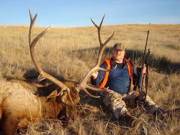 Elk hunts take place on the Lewis and Clark National Forest Lands as well as some bordering private ranches. The terrain varies from rolling hills, grasslands, creek bottoms to heavy timbered mountains with semi-open parks. Hunting is done with the aid of 4×4 trucks, four-wheelers and hiking. Archery elk season is in September in heavy timber, in good populations of elk when bugling during the Sept. rut. The outfitter uses stands along agricultural fields and trails the bulls are using during the rut with good opportunities.  Rifle elk season is the last week of October and all of November. Bulls range from 5×5, to 6x6s in the 260-350 class.