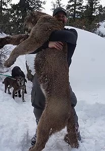 Snowy winter months are perfect for harvesting cougars. Their winter/snow hunts run from late November until mid-March. This hunt is conducted with trucks, snowmobiles, and other off highway vehicles. They start out days very early driving roads looking for mountain lion tracks. Once located, they release the hounds and catch your cat.