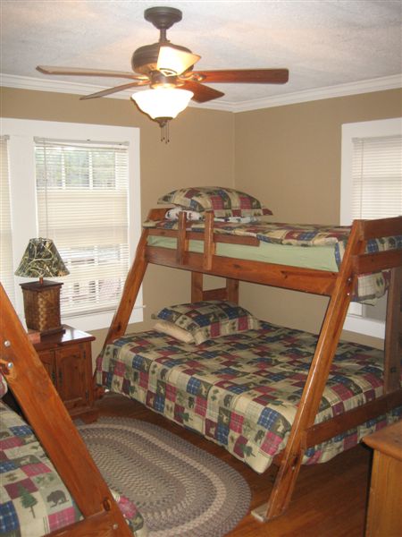 The main cabin sleeps 12 (3 rooms of 4) hunters. However, they only book it for 10 if there are multiple groups in the cabin. Each bedroom has 2 bunk beds that are either twin over double or twin over twin. There is also a small trailer (similar to a job site trailer) that sleeps only 2 and is used mainly for couples. It has a twin-over-double bunk bed, a full bathroom and kitchenette. Hunters staying in the trailer are welcome to use the common areas of the main cabin.
