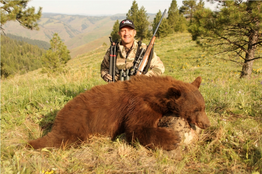 This is an easy drive from Lewiston, Idaho, or about 2 to 3 hours from either Boise or Missoula. Butch felt it was the finest un-baited black bear hunt he personally had ever been on. No one can guarantee that you will see the same number or quality of animals, but we are confident there should be 100% opportunity on 6’ or better bears.