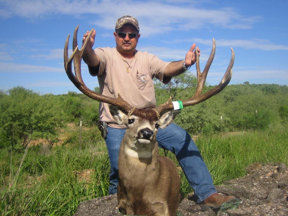 Management bucks CALL FOR DETAILS! These will be big breeder deer that will never be classic 4x4s. They want them out of the breeding pool. They will be everything up to a 4×3, but the guide must approve of the harvest before you shoot. We estimate these deer to be in the 150” to 168” range or so – very nice trophies that most hunters would love. Heck, many U.S. outfitters sell these as trophy deer hunts for $4,000 and up! This is a great way to introduce yourself, or your friend or family member, to the fun of a Mexico adventure. And do it quite reasonably. If you are unsure of whether you want to hunt trophy deer here, try the management hunt. No upgrades, though, so if you book management you cannot upgrade it to trophy. That is because they strictly limit the harvest. So if you see a giant while hunting management deer, you just get to take pictures – then book for next year! Or you can book a trophy deer, plus a management deer – A TWO DEER HUNT! We add one more day of hunting (8 full hunting days, so you can be very picky). You get to take two great bucks. NOTE: A wounded deer counts as a kill, unless outfitter believes the wound to be superficial.