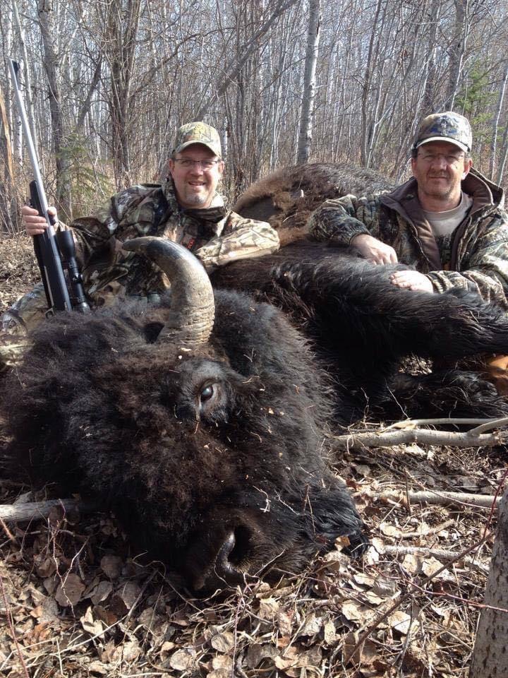 “For anyone looking for a different kind of adventure, I would highly recommend this outfitter’s wood buffalo hunt! You literally hunt the farthest northerly reaches of Alberta. My father and I hunted with Kevin in May. We found Kevin to a very hard-working guide. He was very familiar with the area and was honest (no BS to deal with!). Most bison hunts are quite easy; not this one – you actually have to hunt for them up here! These animals can disappear into the timber with a couple strides! Of course the animal’s size is a little overwhelming – larger than the bison in the lower 48. Both my father and I connected on our trophies! Another awesome opportunity that you have in this hunt is to kill a wolf! We saw lots of sign but left right after we harvested our bison. Something we both regret!!! The hunt is great for a couple buddies or a father & son like we did. This outfitter is the real deal!! We hope to hunt with Kevin again in the near future.” – D. Bahl