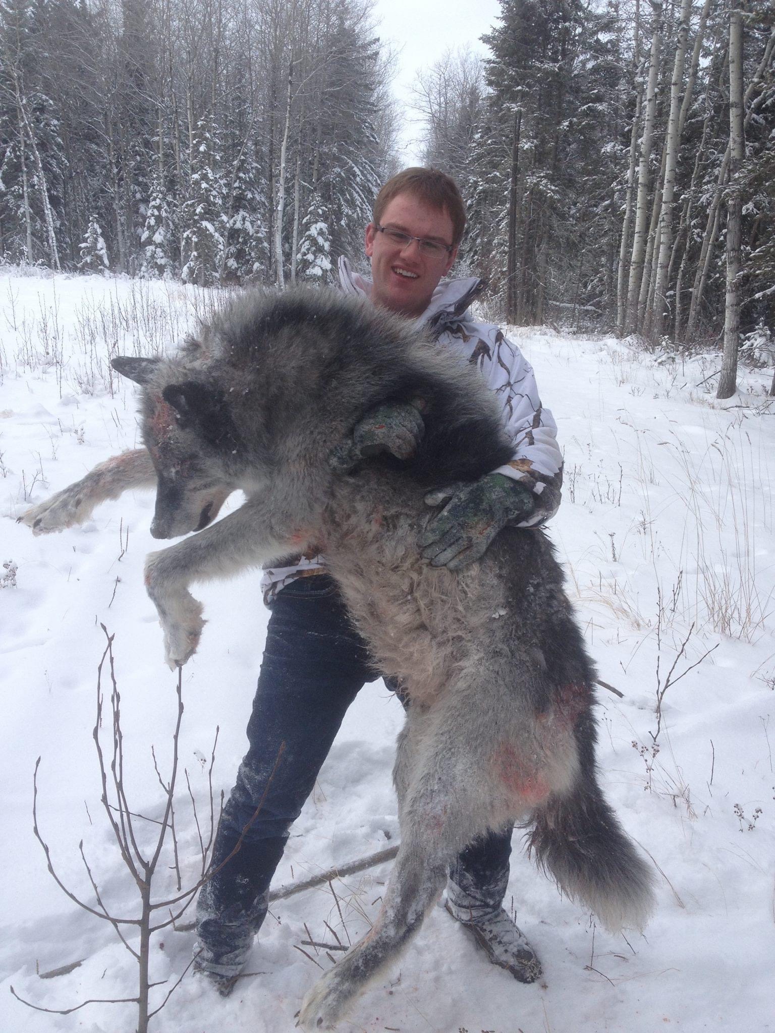 The color of these wolves will vary from salt-and-pepper to white to jet-black. Mature wolves can weigh well over 100 lbs. and have skulls that can measure in the 17”-18” range. A wolf is the ultimate trophy and predator. Currently, there is no limit on how many wolves and coyotes you can shoot in Alberta.