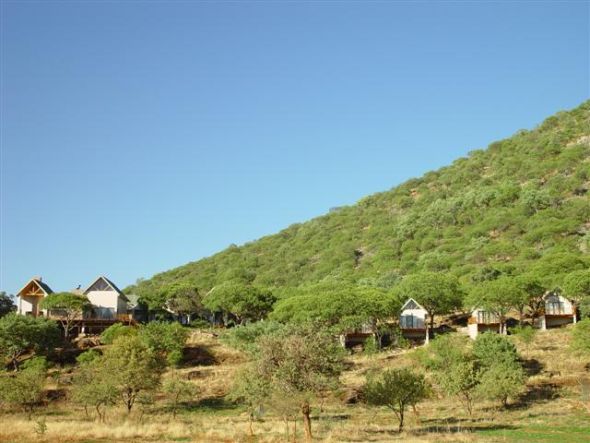 You fly to Windhoek in Namibia, usually passing thru Johannesburg. Some clients like to rest one night in “Joburg” and we have a wonderful guest house to suggest if you want to do that. Steaks around the pool are the norm that first night in Joburg. You can also fly via Frankfurt with Air Namibia or a very pleasant Qatar Air via Doha. You then are fresh the next day. Outfitter then picks you up ($500 r/t) in their Mercedes Crew bus, and drive you in air-conditioned comfort the 4 hours north to their lodges. Those lodges are lying to the east of Etosha Park, the famed Game Park. Test shoot your guns and bows and you may be hunting that afternoon! Or just kick back for an afternoon game drive.