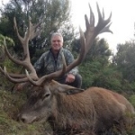 We had a recent client book this hunt, taking a 600 class stag, an elk of almost 400 class and a giant fallow buck as well, taking three giant animals in under a week of hunting! Here is a picture of Peter B’s stag:600 class stag by our client.