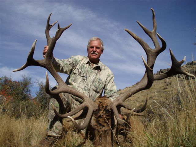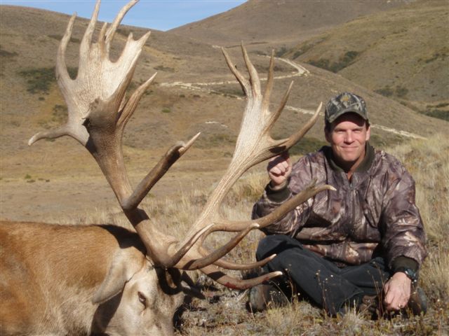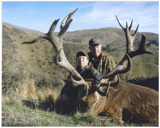 We are justifiably proud of this outfitter of ours He was named the PROFESSIONAL HUNTER OF THE YEAR recently by the prestigious Safari Club!! Considering the thousand of professional outfitters out there- this is an awesome honor!! So if you want some of the very best guiding and hunting there is any where in the world- this hunt is for you! And the touring options for non-hunters are truly exciting as well!! Butch and Joan personally hunted this operation along with a bunch of their clients taking stag, elk, chamois, fallow, boar and tahr. We unhesitatingly endorse it and you will love it. Here is a picture of Joan’s 337 class stag: