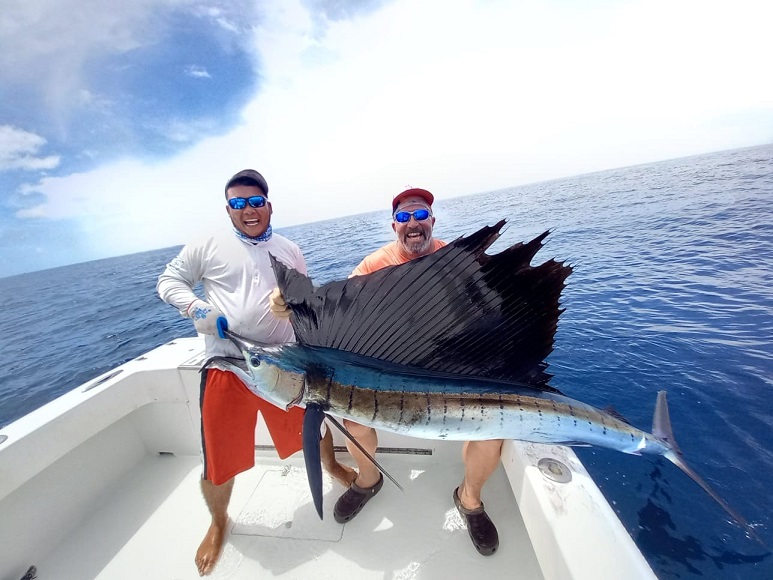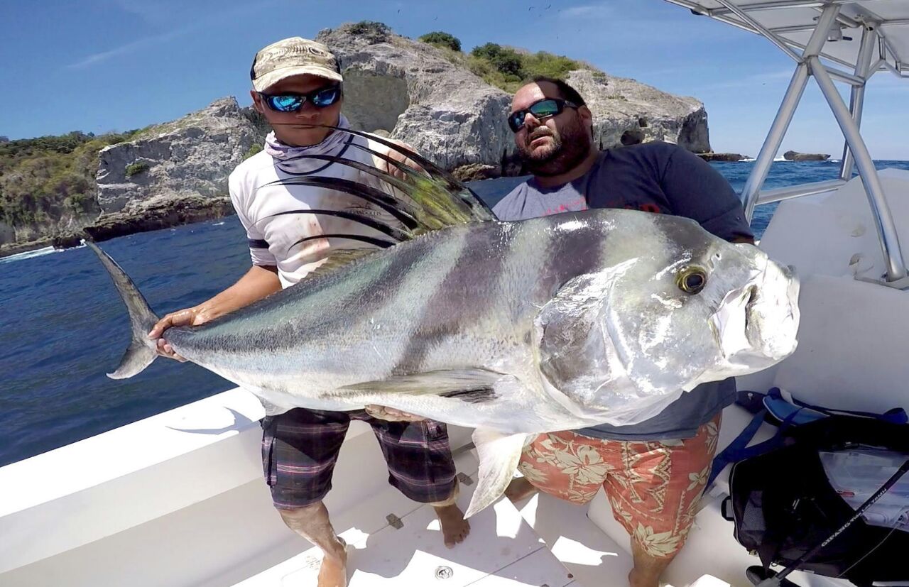 So for a very brief description of species let’s consider these: Black Marlin to 800 pounds; huge sailfish; giant yellowfin tuna to 300 pounds; huge dorado (mahi-mahi); cubera snapper; rooster fishing that can be fantastic; cobalt trevally; snook; amberjack; jack crevalle; huge snapper of many varieties; african pompano; rainbow runner; milkfish; sharks;– and the list goes on! And on. Perhaps 50 or more species, and for many folks they will be the first of that specie that they ever caught!